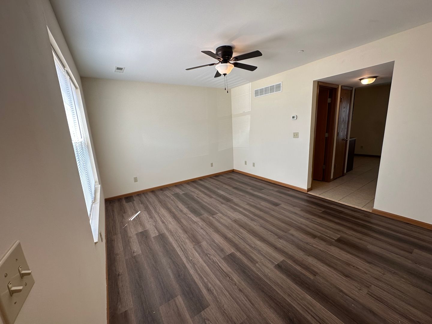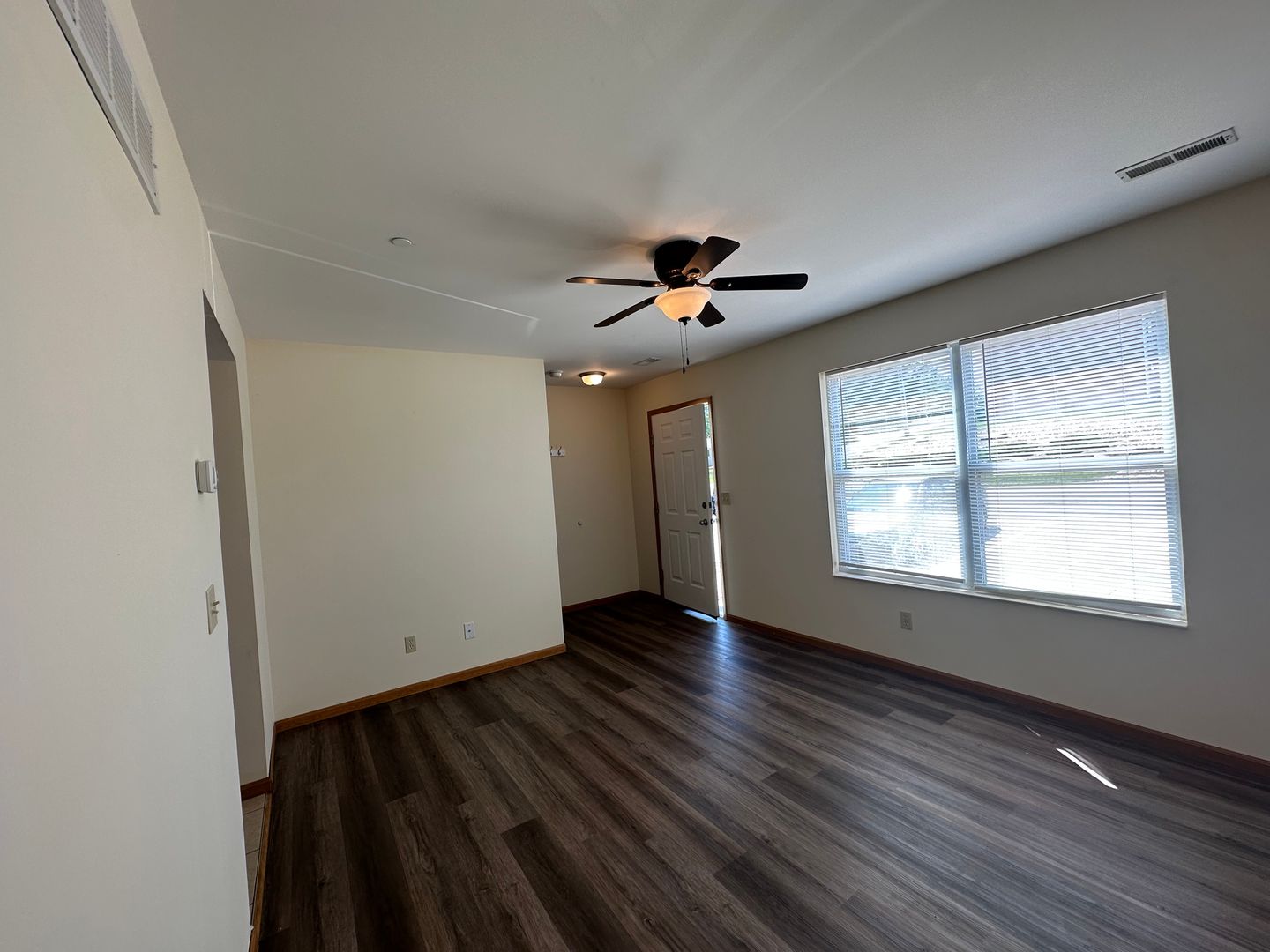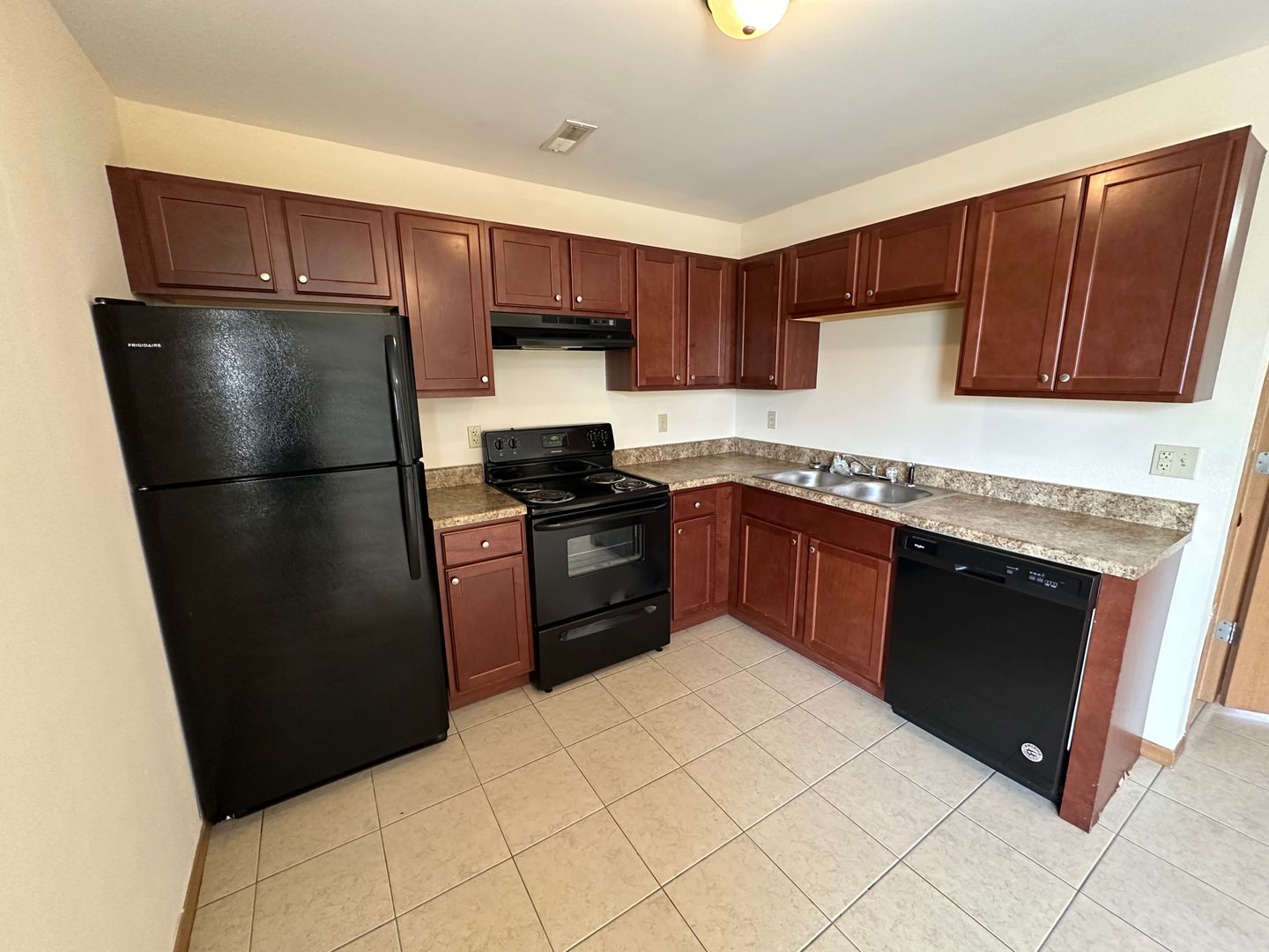 Our spacious 2BR-1.5BA townhome is 1,008 square feet. The living/dining room, kitchen, washer & dryer hookup and half bath are located on the main floor. Upstairs are the two bedrooms and full bath. The kitchen is equipped with a refrigerator, range/oven, dishwasher, and range hood. Beautiful cabinets and lots of countertop space.