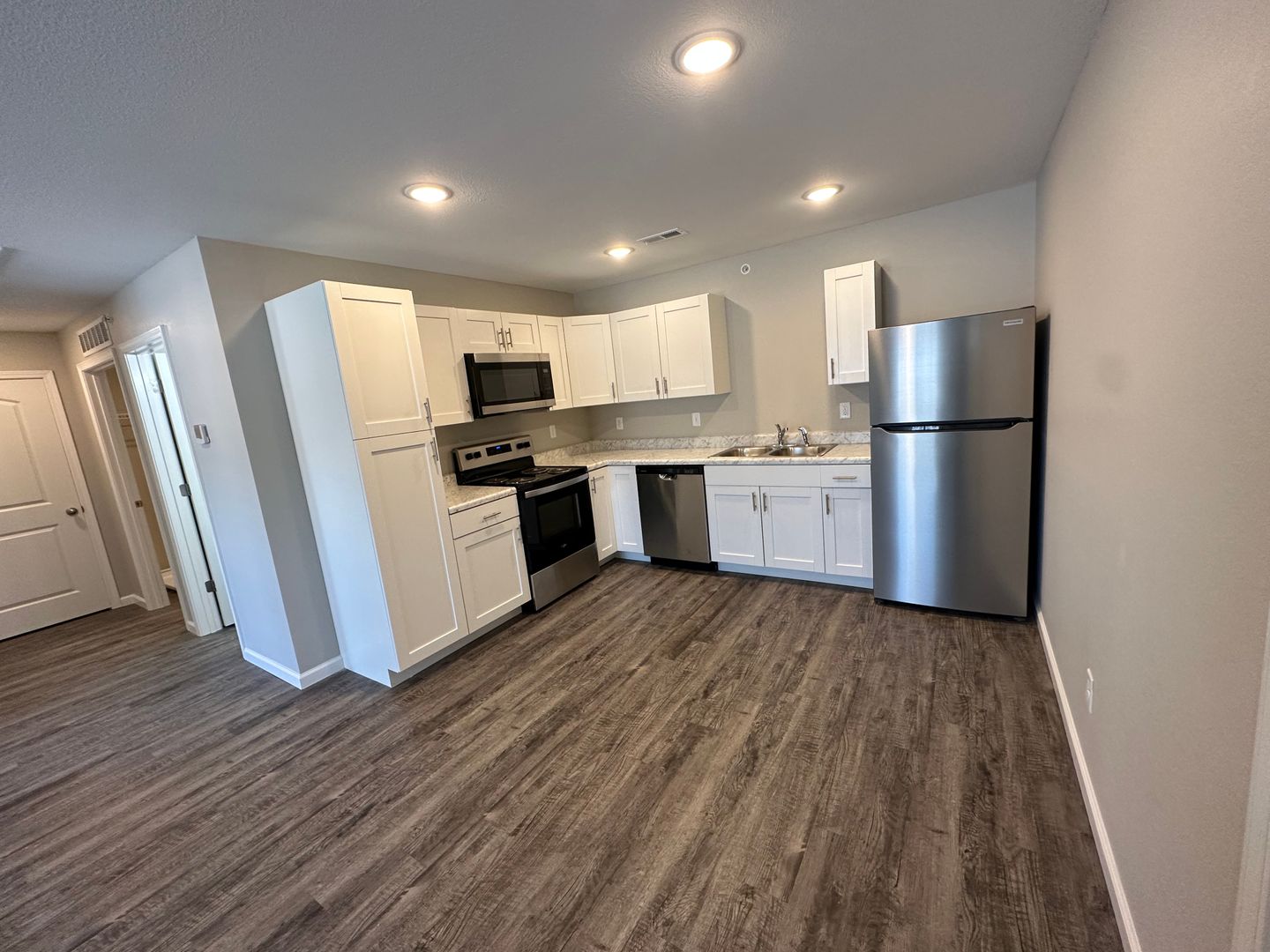 Step inside and enjoy a modern kitchen complete with a stainless steel refrigerator, electric range/oven, built-in microwave, dishwasher, garbage disposal, and a vent hood—everything you need for easy meal prep and cleanup. Your home is equipped with energy-efficient, all-electric systems, central heating and air conditioning, LED lighting, and in-unit washer/dryer hookups for maximum convenience.
