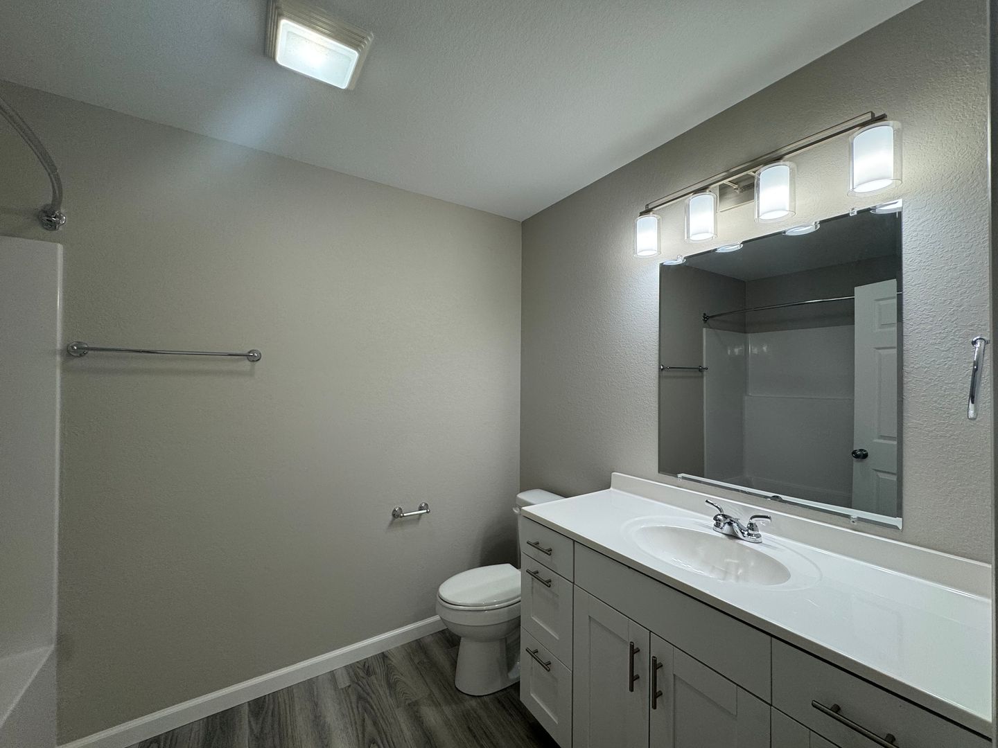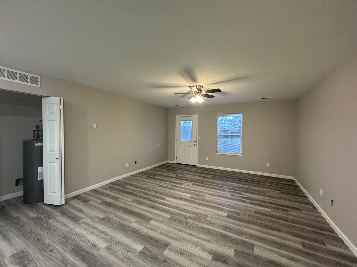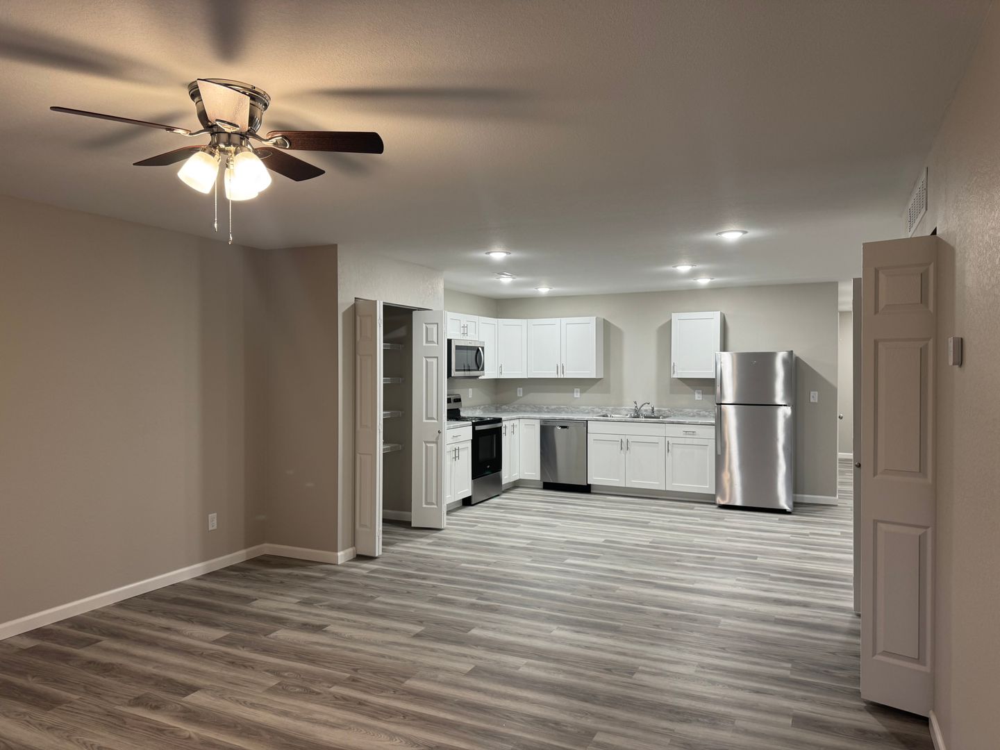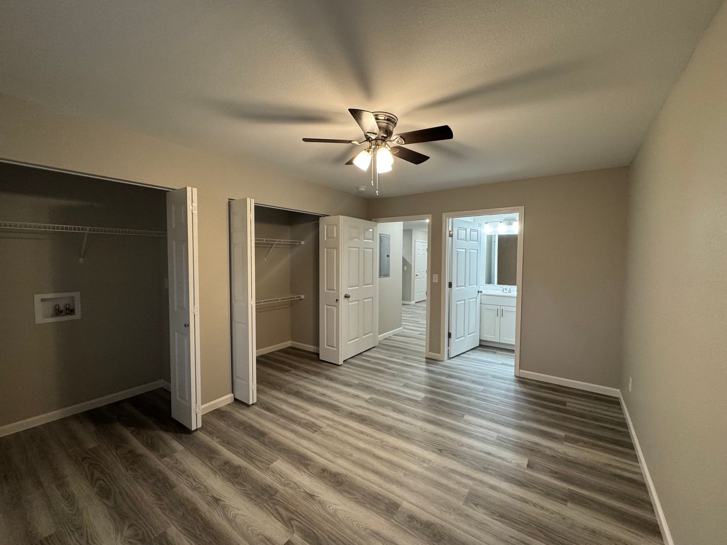 Inside, you’ll find modern wood-style plank flooring, ceiling fans, LED lighting, and stylish fixtures throughout. Comfort is built in with central HVAC and washer/dryer hookups, while high-speed fiber optic internet keeps you connected.