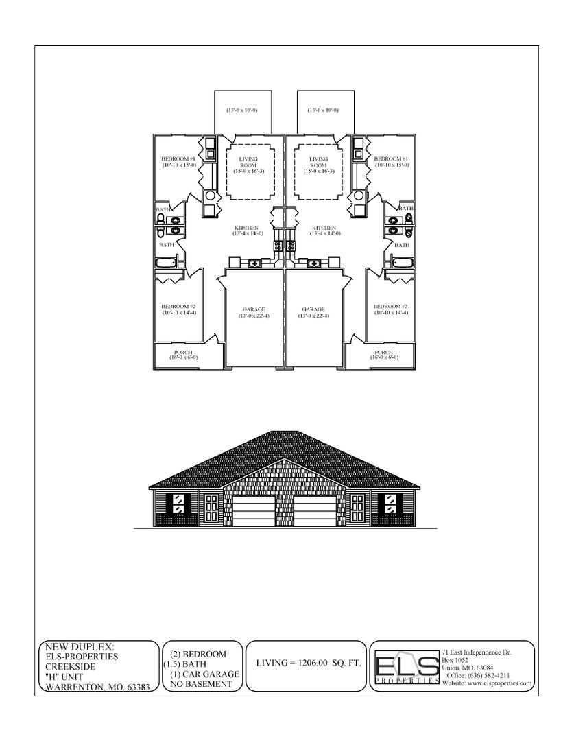 2BR-1.5BA Duplex Villa - Creekside Apartments - Warrenton MO 63383
