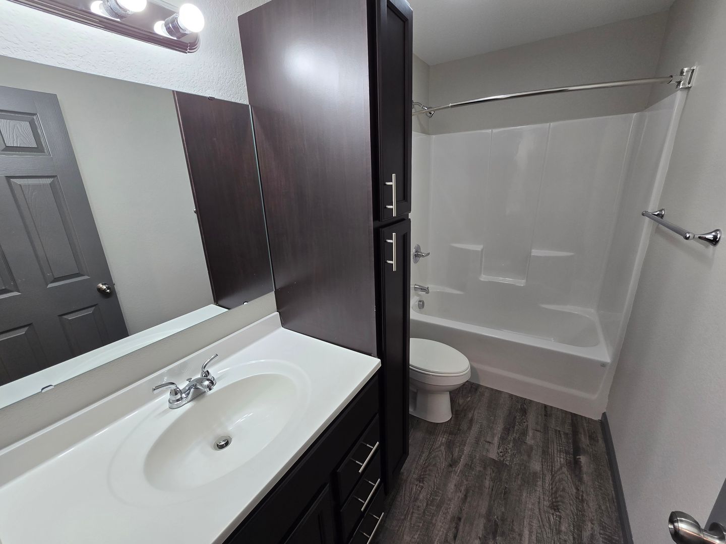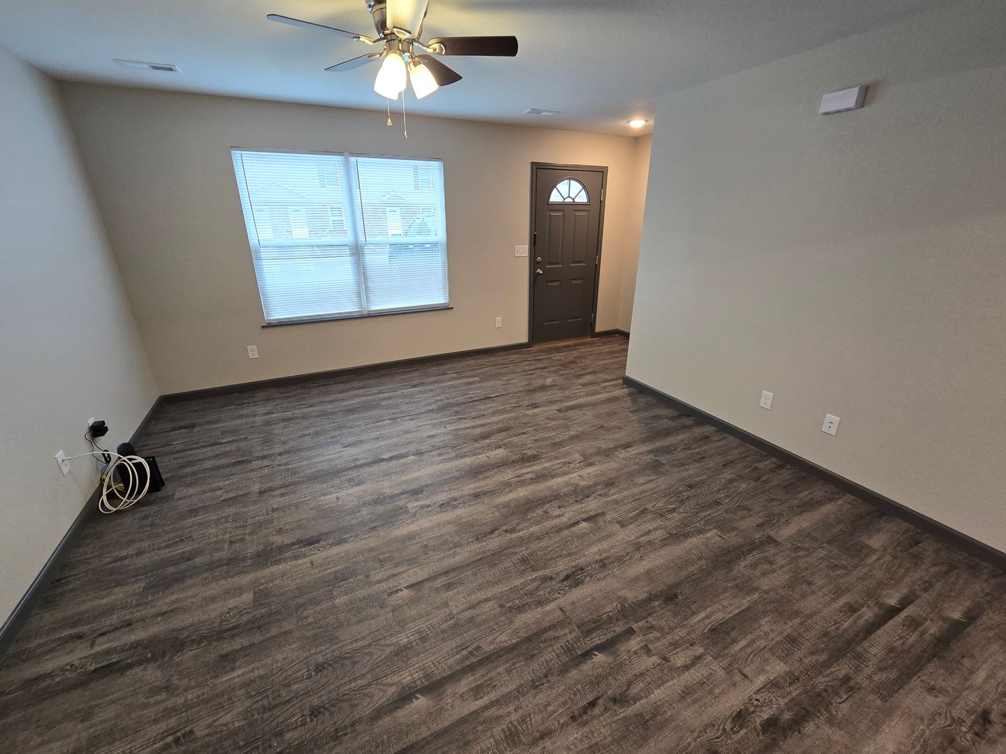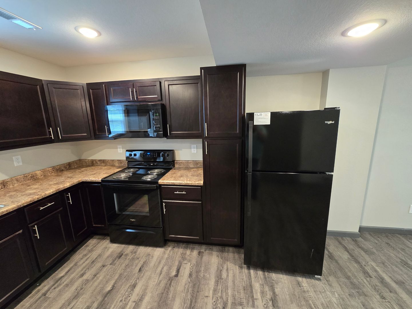 Explore our 2-bedroom, 1.5-bath bi-level townhomes, designed with modern features to enhance your lifestyle. Inside, you'll find a fully equipped kitchen with a refrigerator, electric range/oven, dishwasher, built-in microwave, and vent, plus a washer and dryer for added convenience. Enjoy year-round comfort with central HVAC, and stylish finishes such as plush carpeting in the bedrooms and wood-style plank flooring throughout.