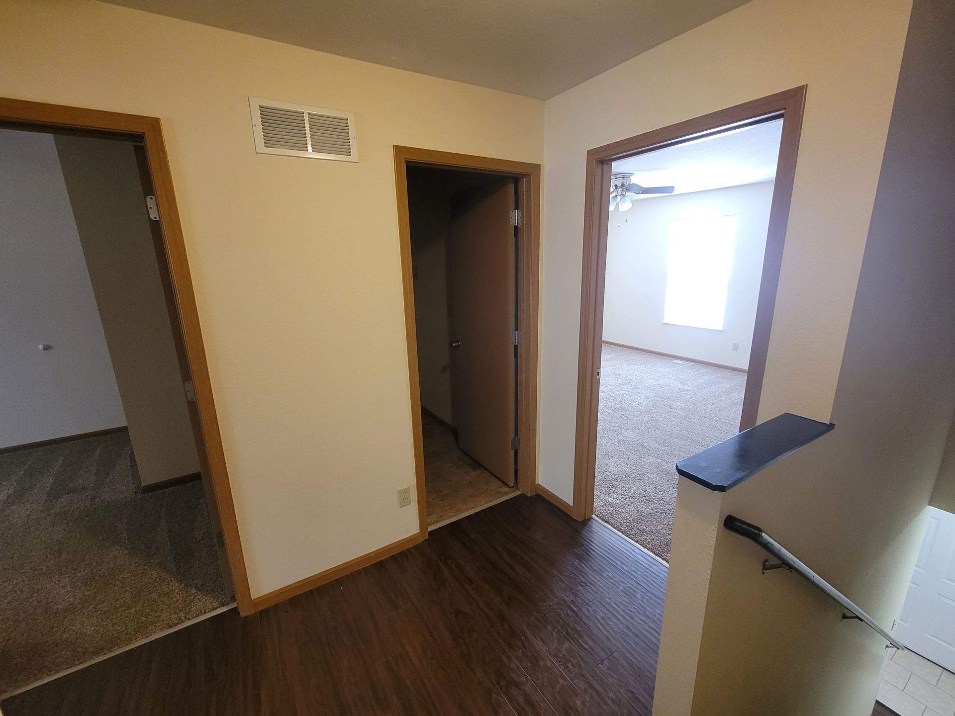 Our spacious 3-bedroom townhome features 1,292 square feet of living space. The main level includes an open-concept living and dining room combination, a kitchen, a washer and dryer hookup, and a half bath. Upstairs, you will find the three bedrooms and a full bathroom. The kitchen is equipped with a refrigerator, range/oven, dishwasher, and range hood, along with beautiful cabinets and plenty of countertop space.