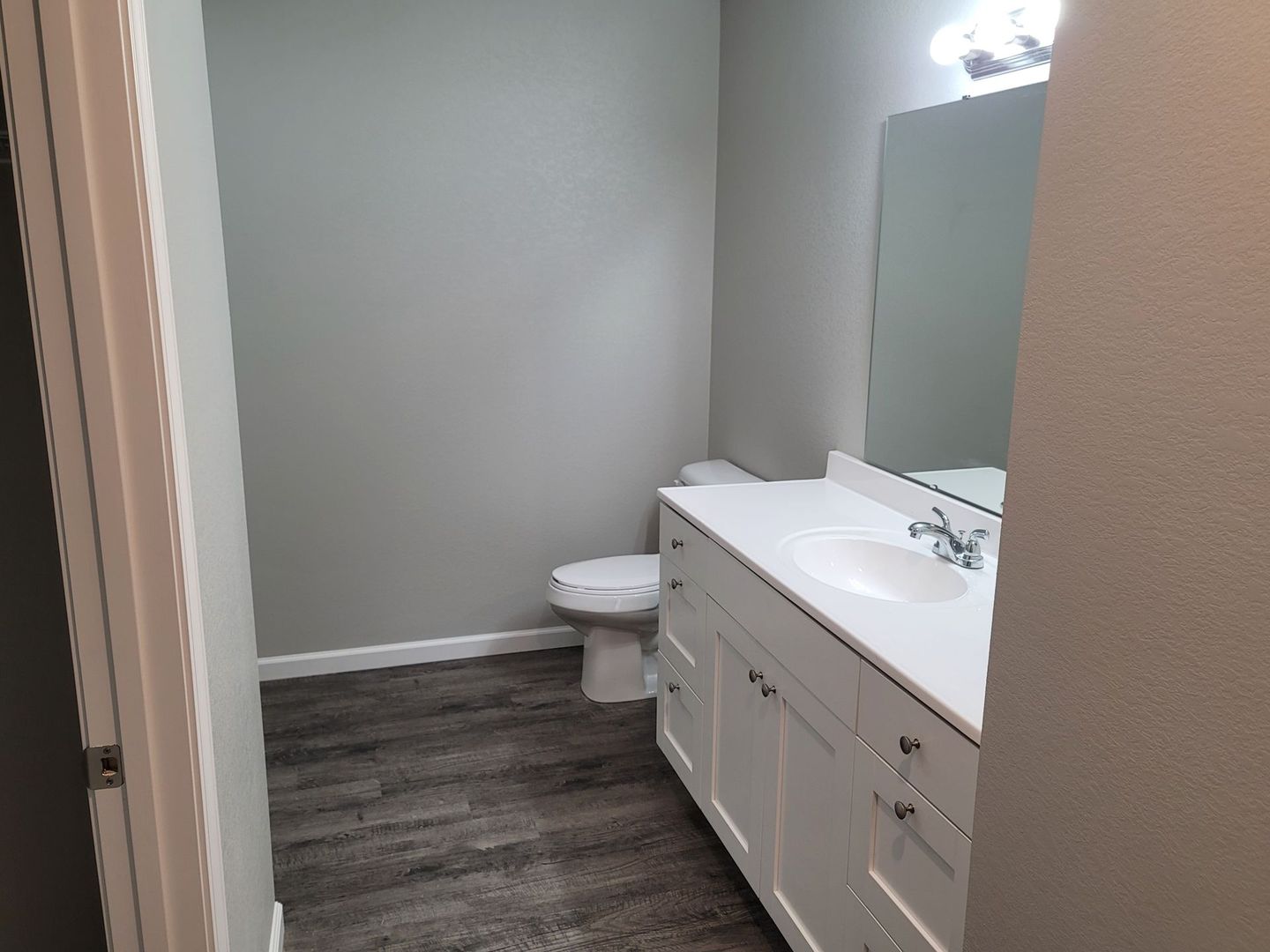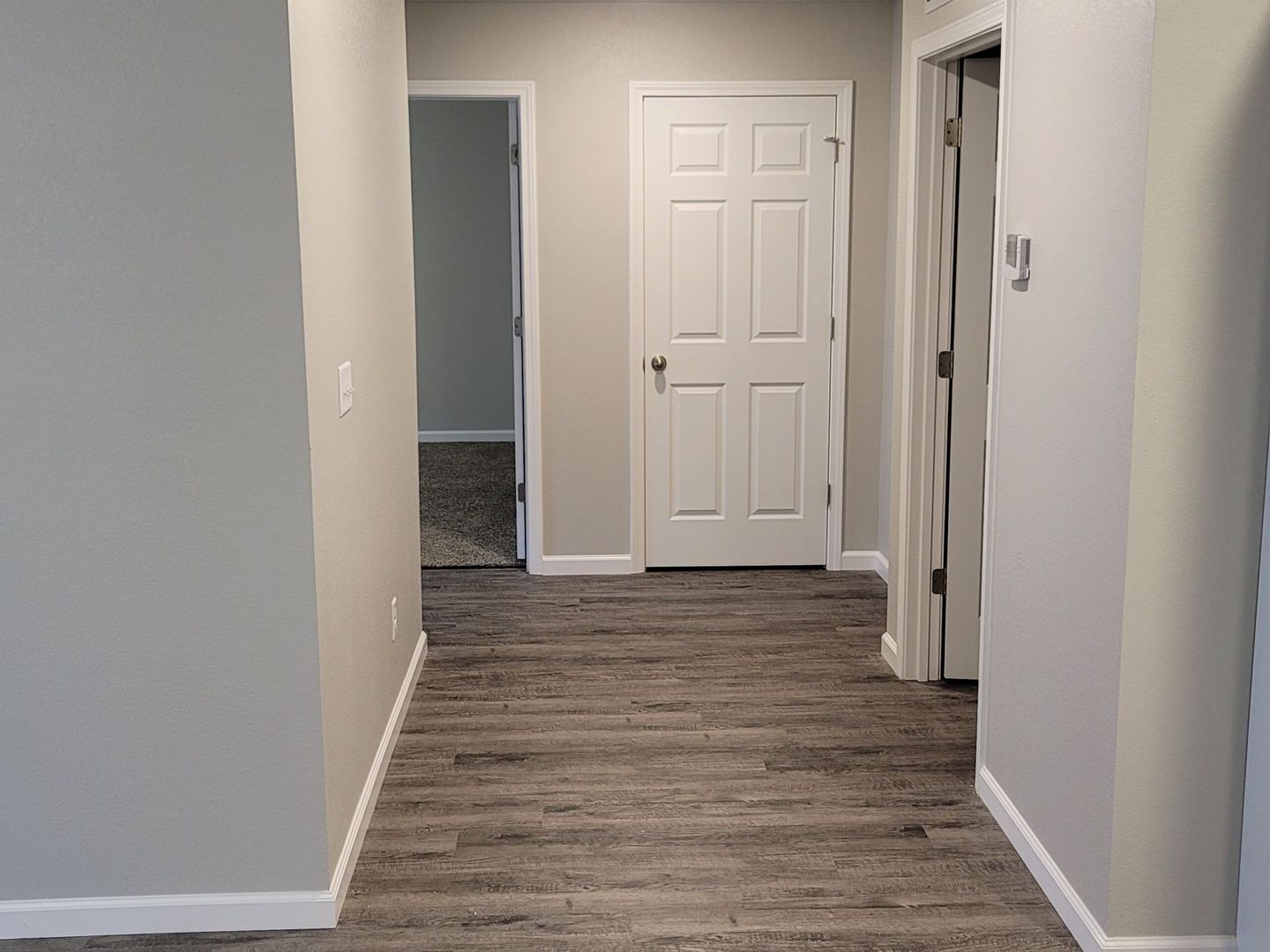 Inside, enjoy wood-style plank flooring in the main living spaces, plush carpet in the bedrooms, and a bright atmosphere created by modern light fixtures, LED lighting, and ceiling fans. Stay comfortable year-round with central HVAC, and make laundry days a breeze with in-unit washer/dryer hookups.