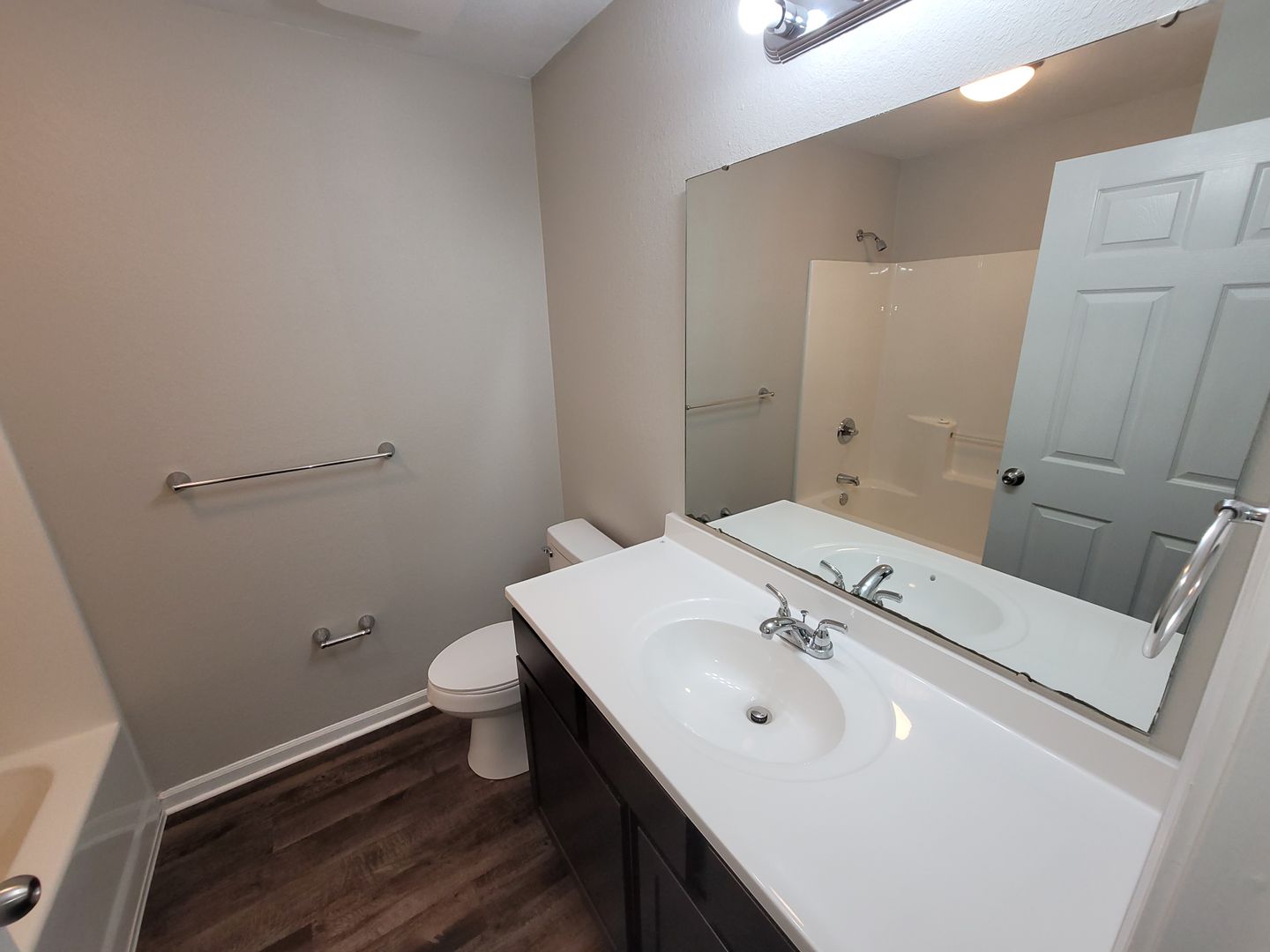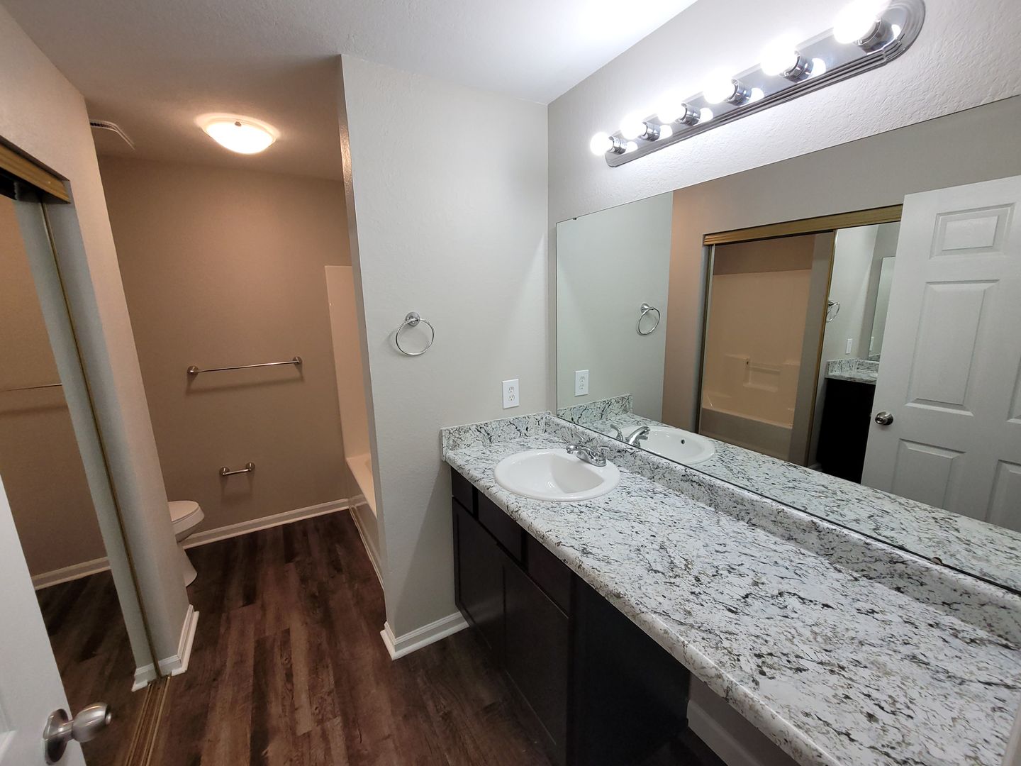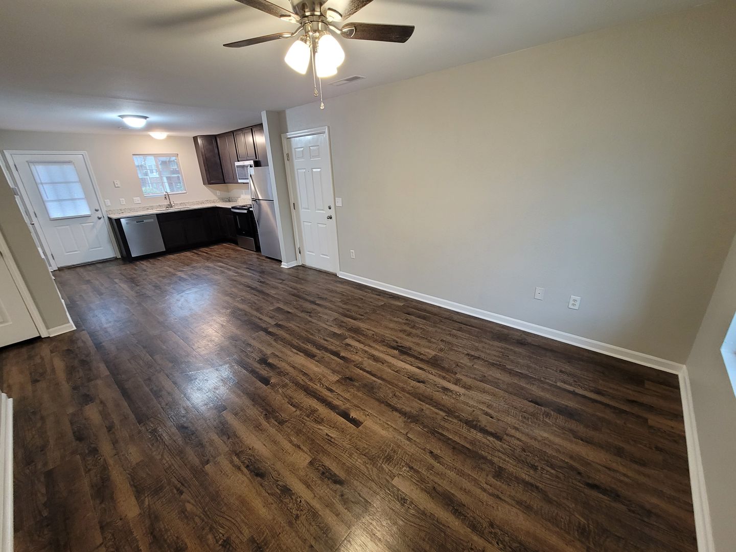 Discover spacious, stylish living in our 3-bedroom, 2-bathroom apartments designed with your comfort in mind. Each home features a sleek kitchen equipped with stainless steel appliances including a refrigerator, range/oven, dishwasher, and built-in microwave with vent. Rich espresso cabinets and granite countertops add a sophisticated touch, making cooking a joy.