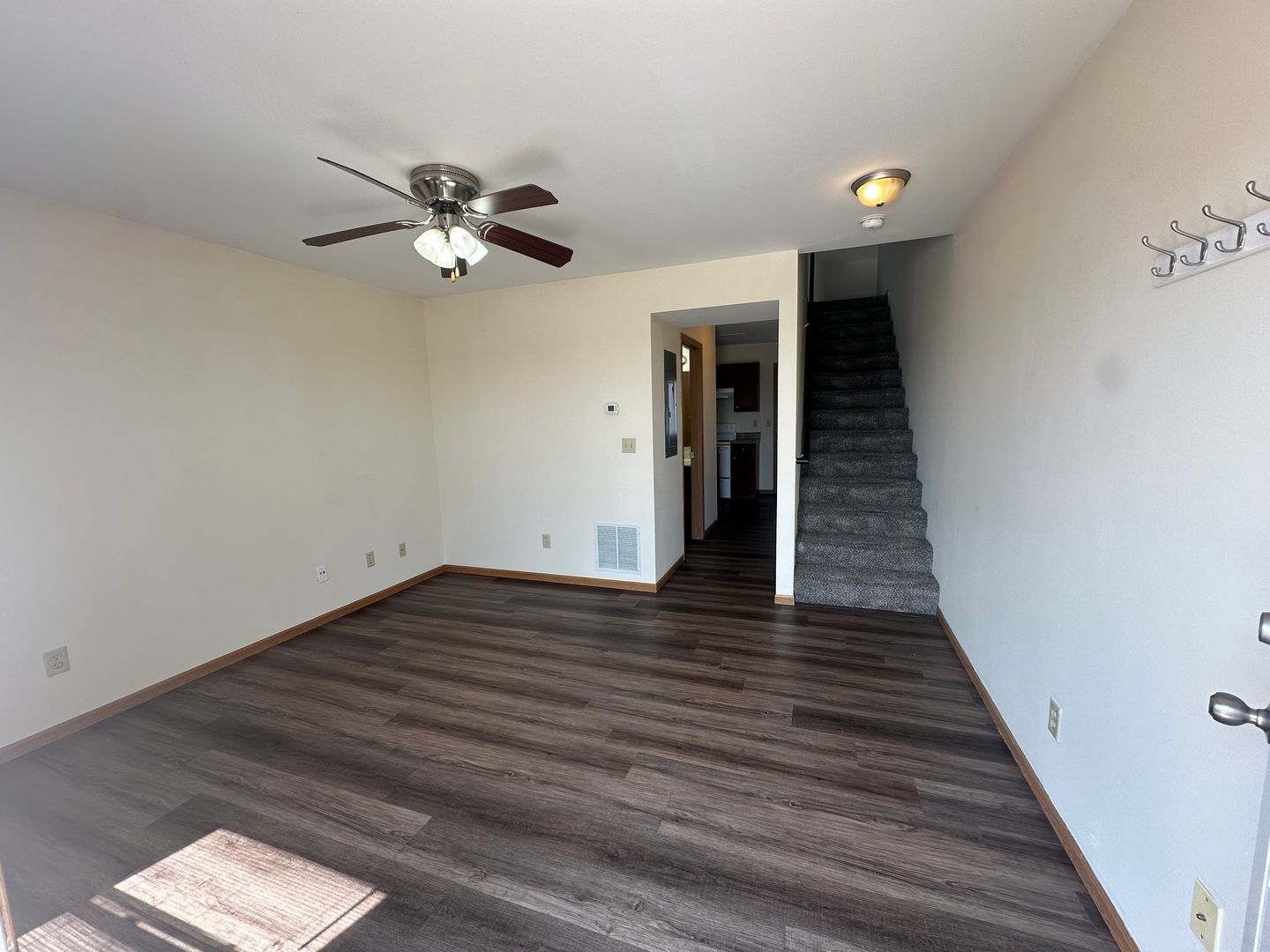 Our 1BR-1.5BA townhome is sure to meet your needs! This spacious 784 square foot townhome is all electric with central HVAC, fully equipped kitchen, with laminate flooring in the living room, kitchen, and bathrooms. Your bedroom is upstairs with a full bathroom. Washer and dryer hookups and high-speed internet and cable through Cable Spectrum is available.