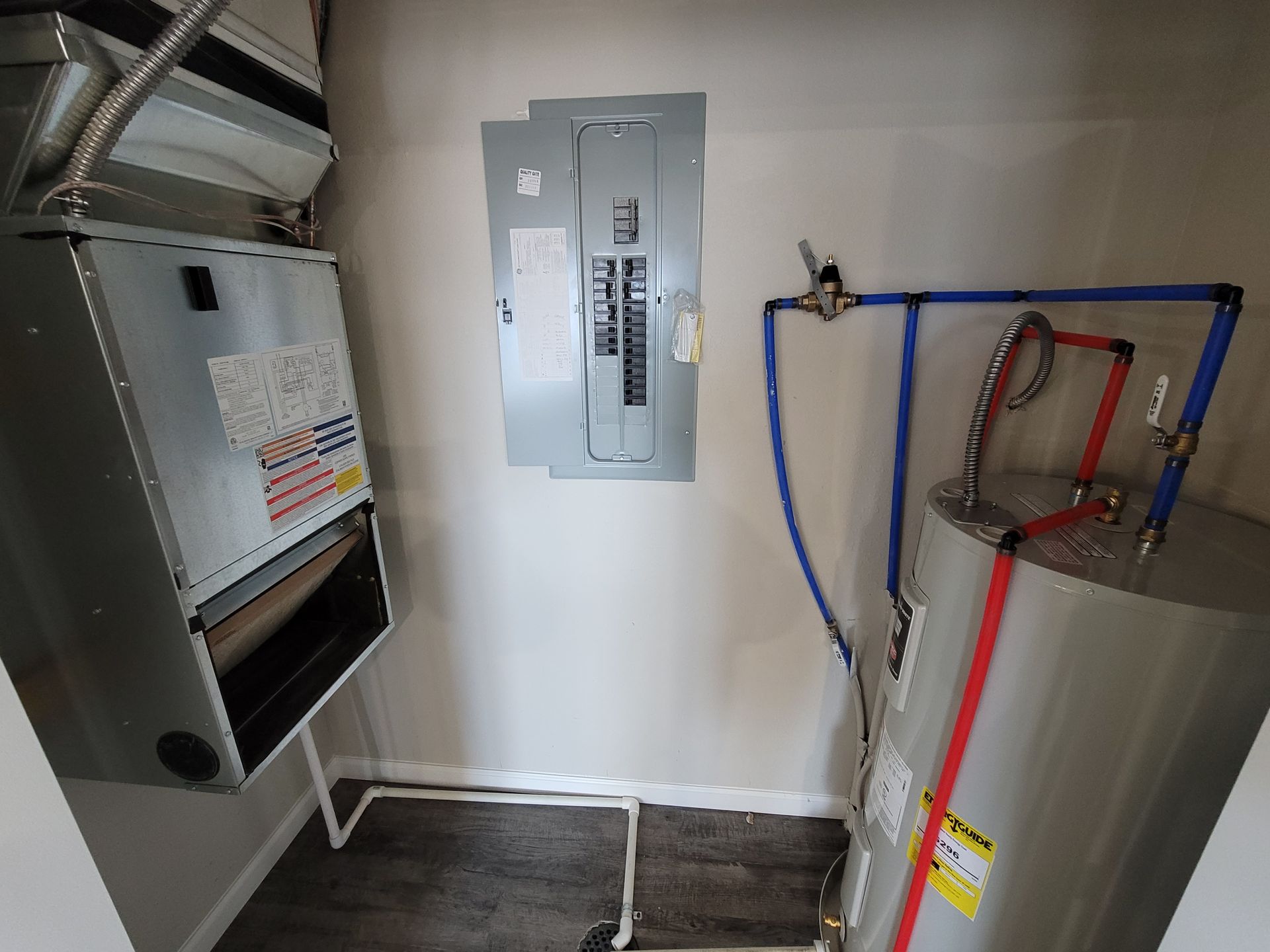 Enjoy year-round comfort with central HVAC, all-electric energy-efficient units, LED lighting, modern fixtures, and ceiling fans. Each apartment includes washer and dryer hookups, so laundry is convenient and hassle-free. The attached 2-car garage offers ample parking and extra storage space.