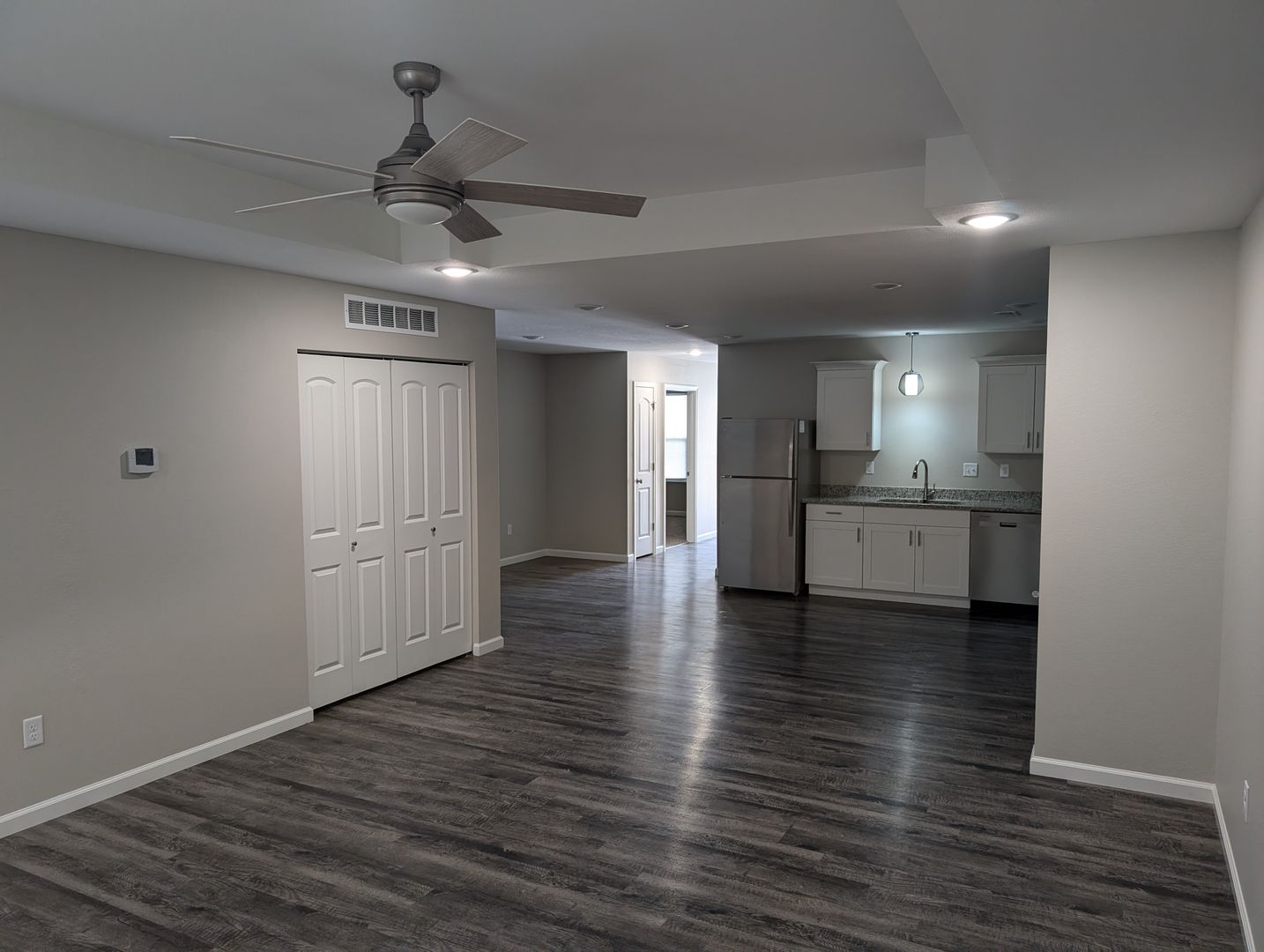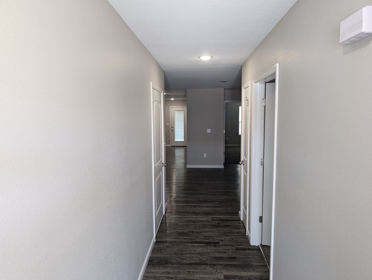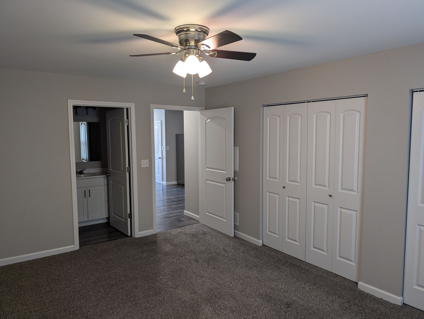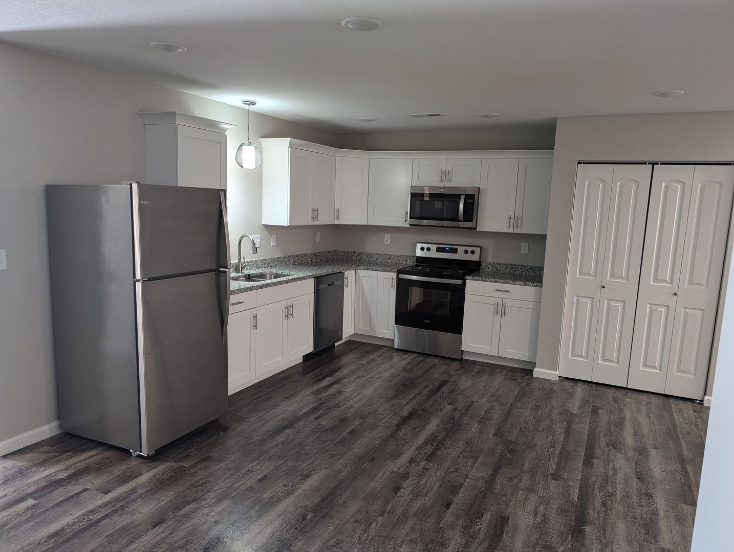 Enjoy year-round comfort with central HVAC and the energy efficiency of an all-electric unit. Washer and dryer hookups are included for your convenience. Bright LED lighting, contemporary fixtures, and ceiling fans illuminate and enhance the space. The modern wood-style plank flooring flows throughout the main living areas, complemented by plush carpeting in the bedrooms for added warmth and coziness.