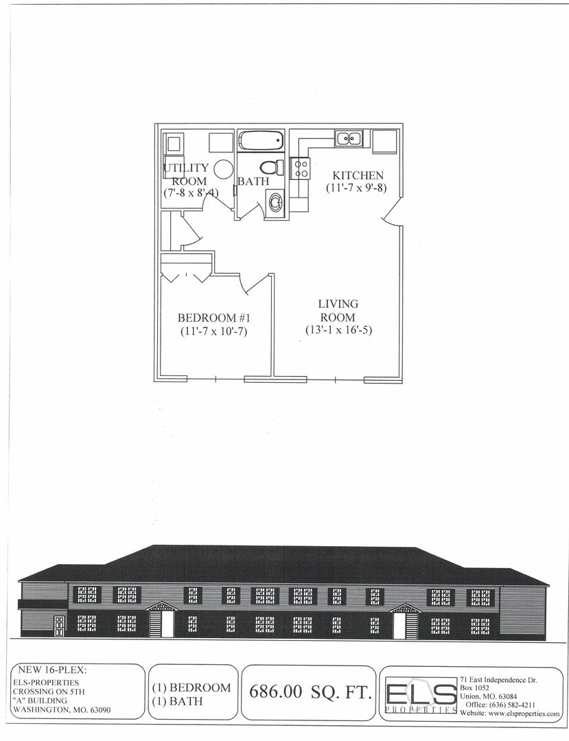 1BR-1BA Apartment - The Crossing on 5th - Washington MO 63090