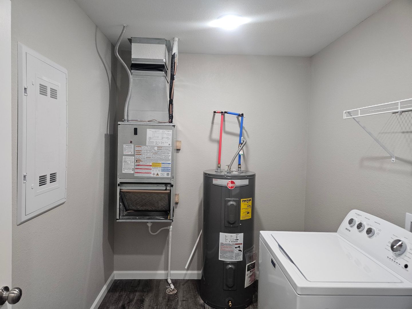 Step inside and enjoy stylish touches like sleek light fixtures, ceiling fans, and plush bedroom carpeting that create a warm and welcoming vibe. Your fully equipped kitchen includes a dishwasher, refrigerator, and all-electric appliances, while central HVAC keeps you comfortable year-round. A washer and dryer in every unit adds everyday convenience.