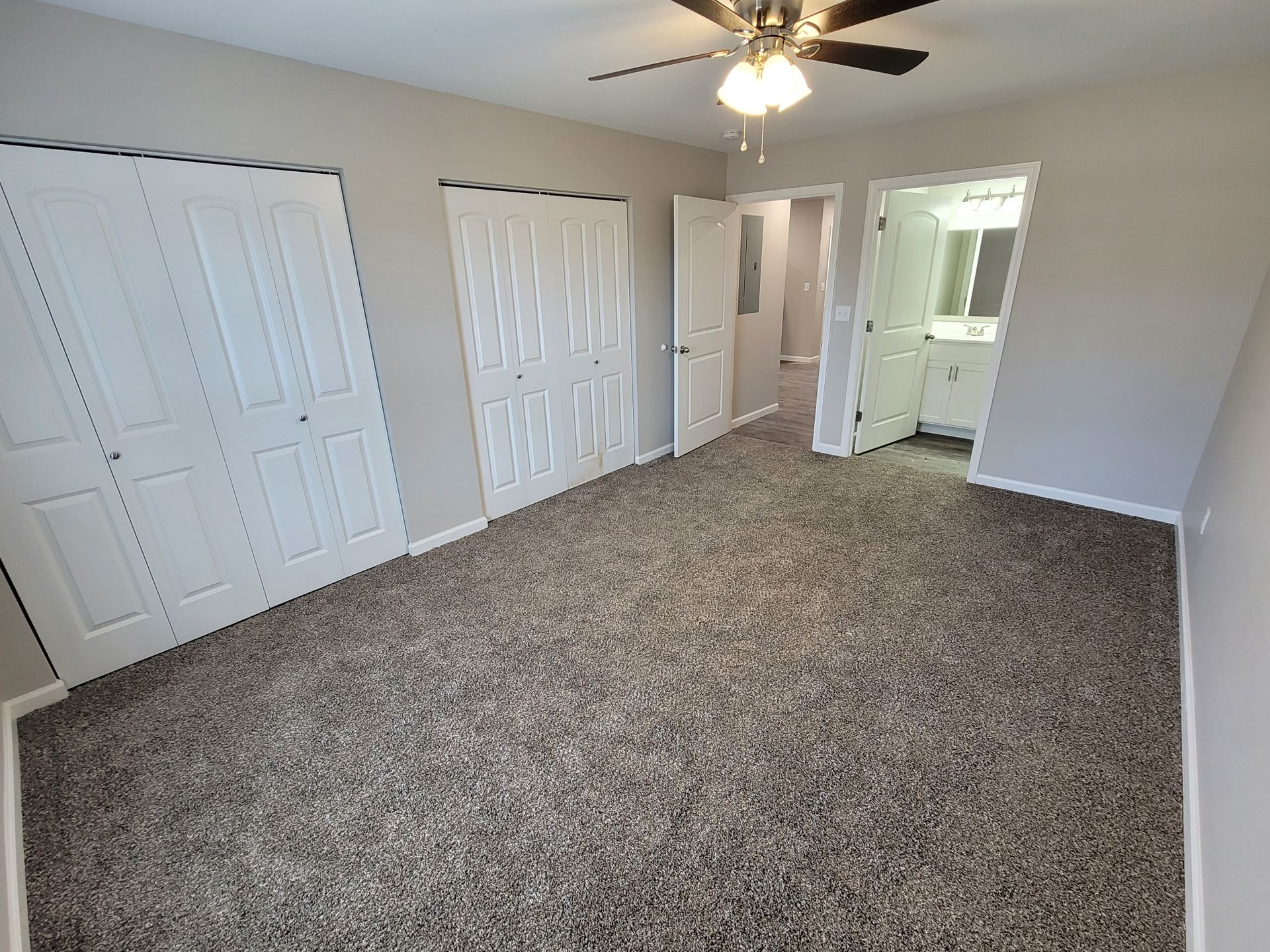 Enjoy year-round comfort with central HVAC in this all-electric unit. Washer and dryer hookups add extra convenience. Stylish LED lighting, modern fixtures, and ceiling fans enhance the inviting atmosphere throughout. The living areas showcase durable wood-style plank flooring, while the bedrooms feature plush carpeting for added coziness.